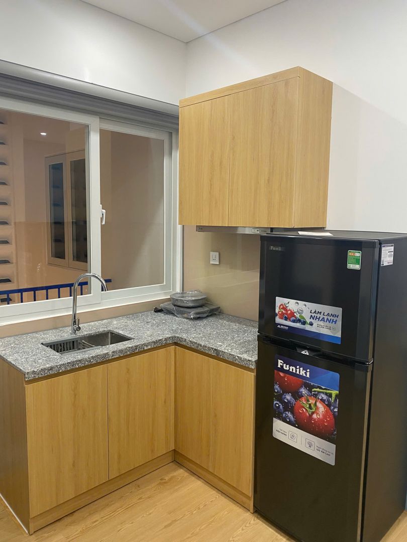 - Trang bị nội thất cơ bản (máy giặt dùng chung trên sân thượng),khoá cửa vân tay thông minh, an toàn, tiện lợi