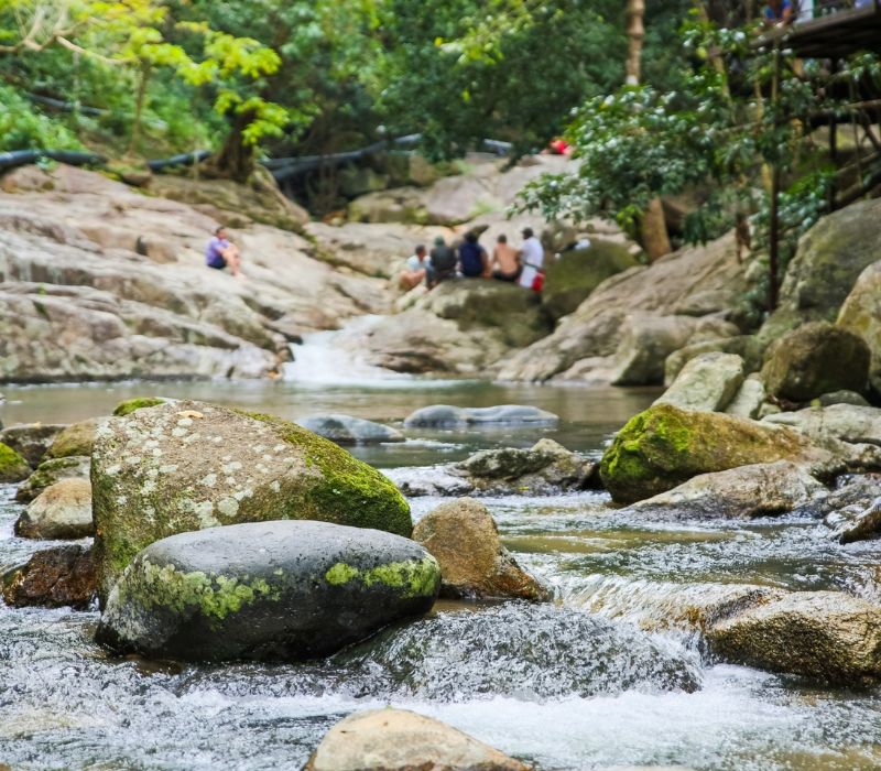 Một điểm nhấn đặc biệt là Hồ Tiên, hồ nước tự nhiên hình thành từ những tảng đá lớn chắn dòng chảy, với làn nước trong xanh nhìn thấu đáy, soi rõ cát trắng và đàn cá nhỏ tung tăng bơi lội. Trên hành trình dọc theo Suối Tiên, du khách còn được chiêm ngưỡng nhiều thắng cảnh độc đáo gắn liền với truyền thuyết như Dấu chân Voi, bàn chân Người khổng lồ, bàn cờ Tiên, động Tiên…