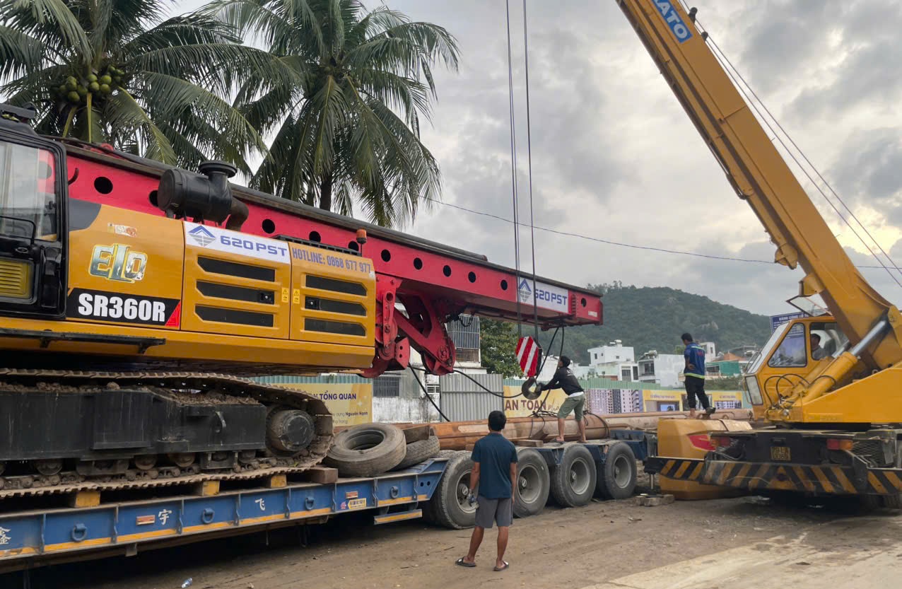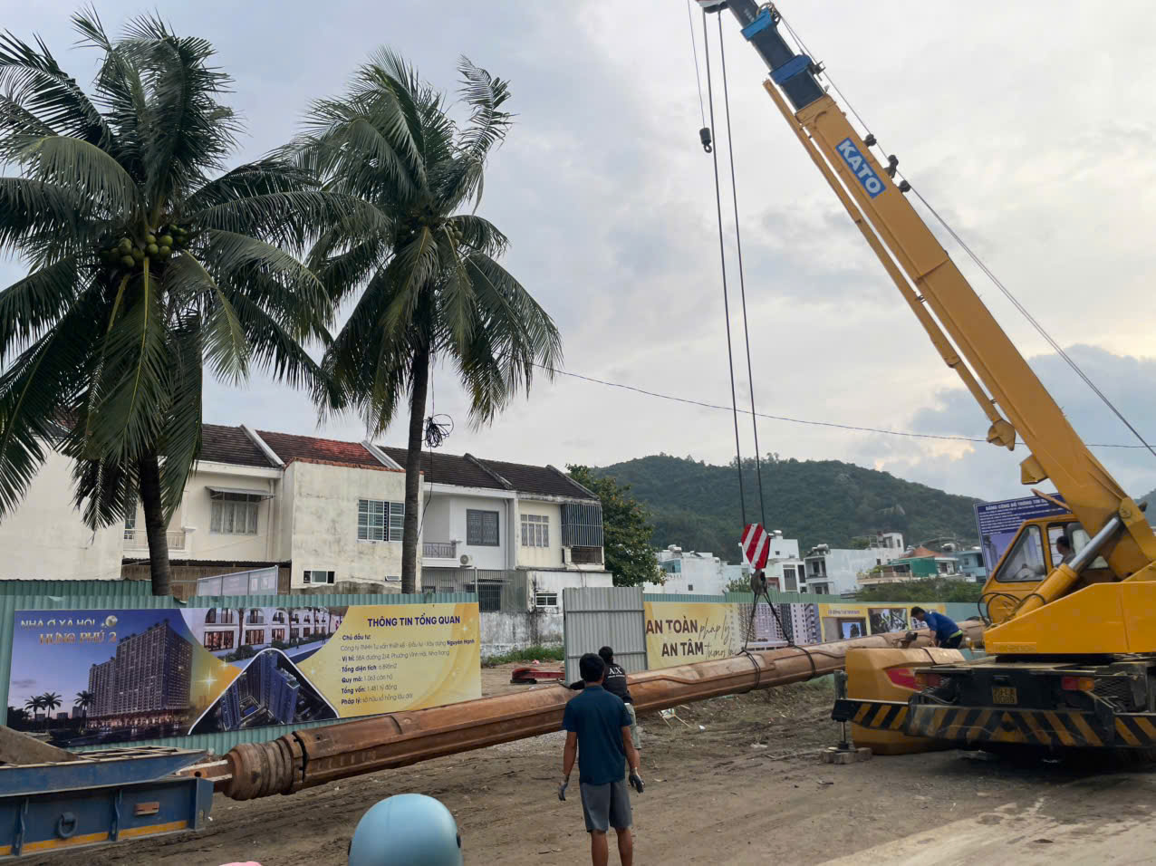 Tại hiện trường dự án, máy móc thi công đã được tập kết để triển khai những hạng mục quan trọng của tòa nhà.