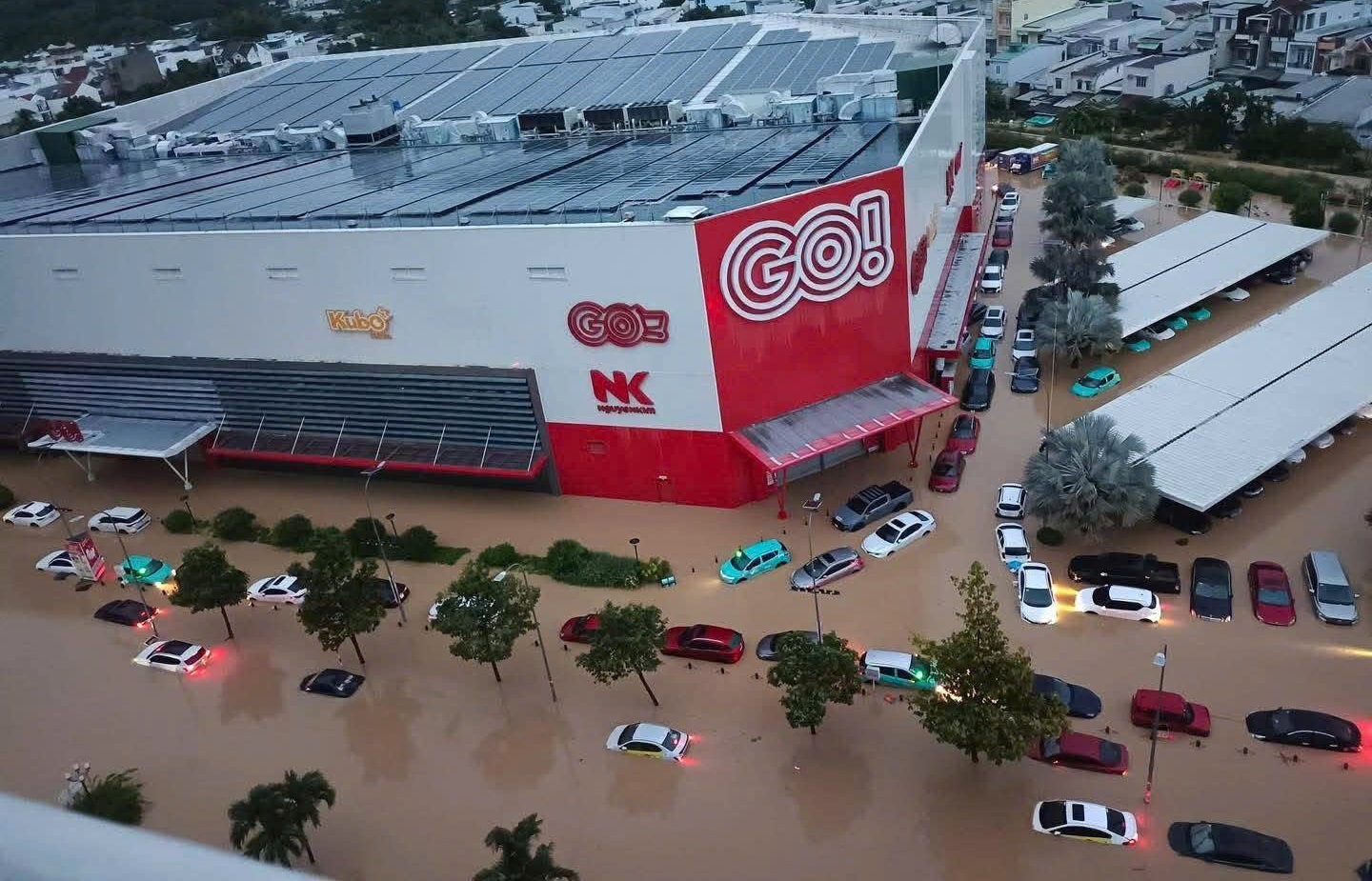 Với hạ tầng được nâng code lên khá cao so với khu vực nội khu Nha Trang, nhưng hàng trăm xe ô tô tại đây vẫn không thoát khỏi cảnh chìm trong biển nước.